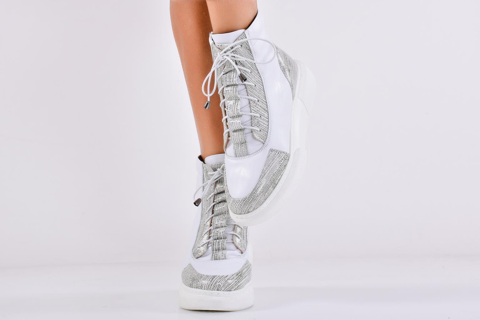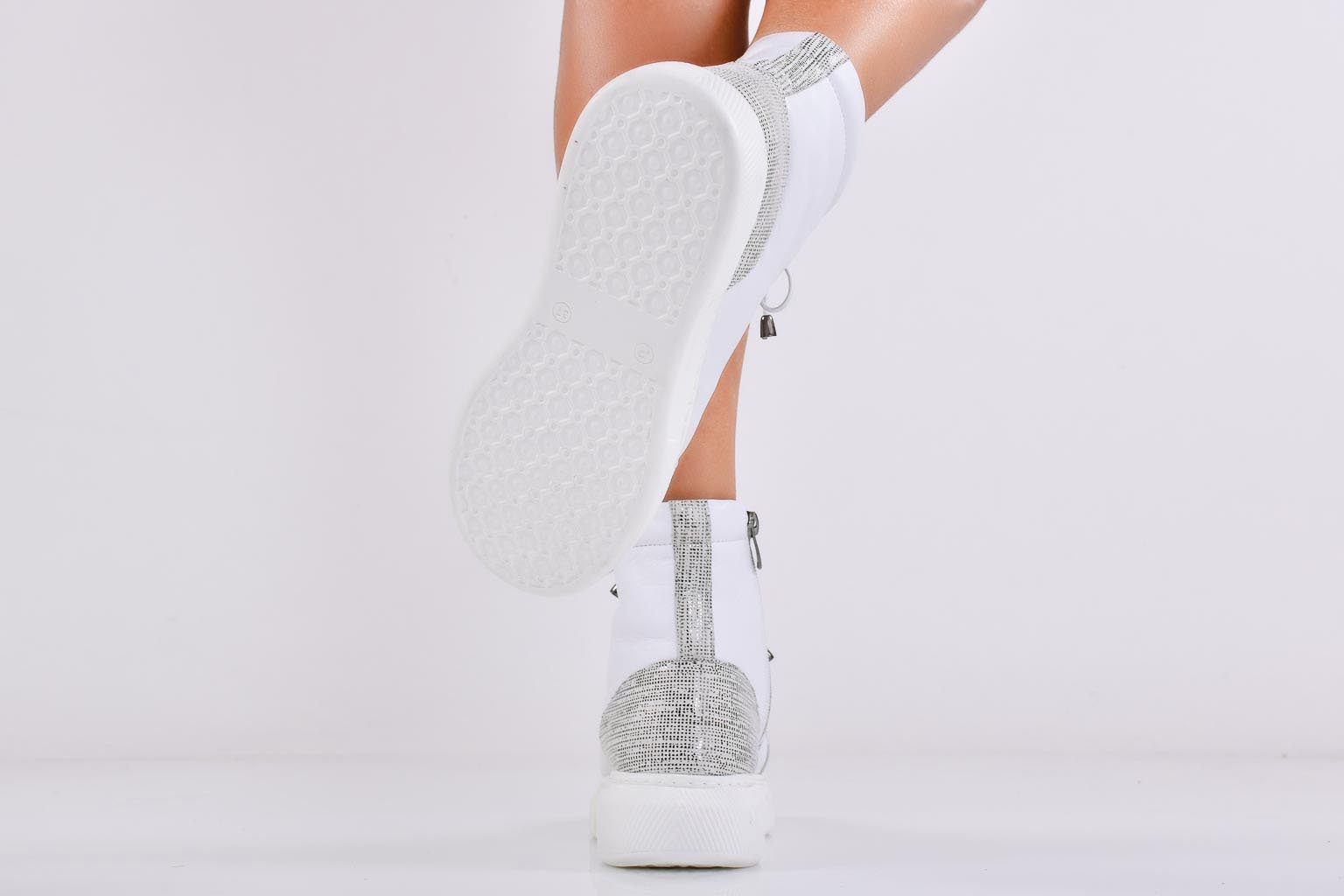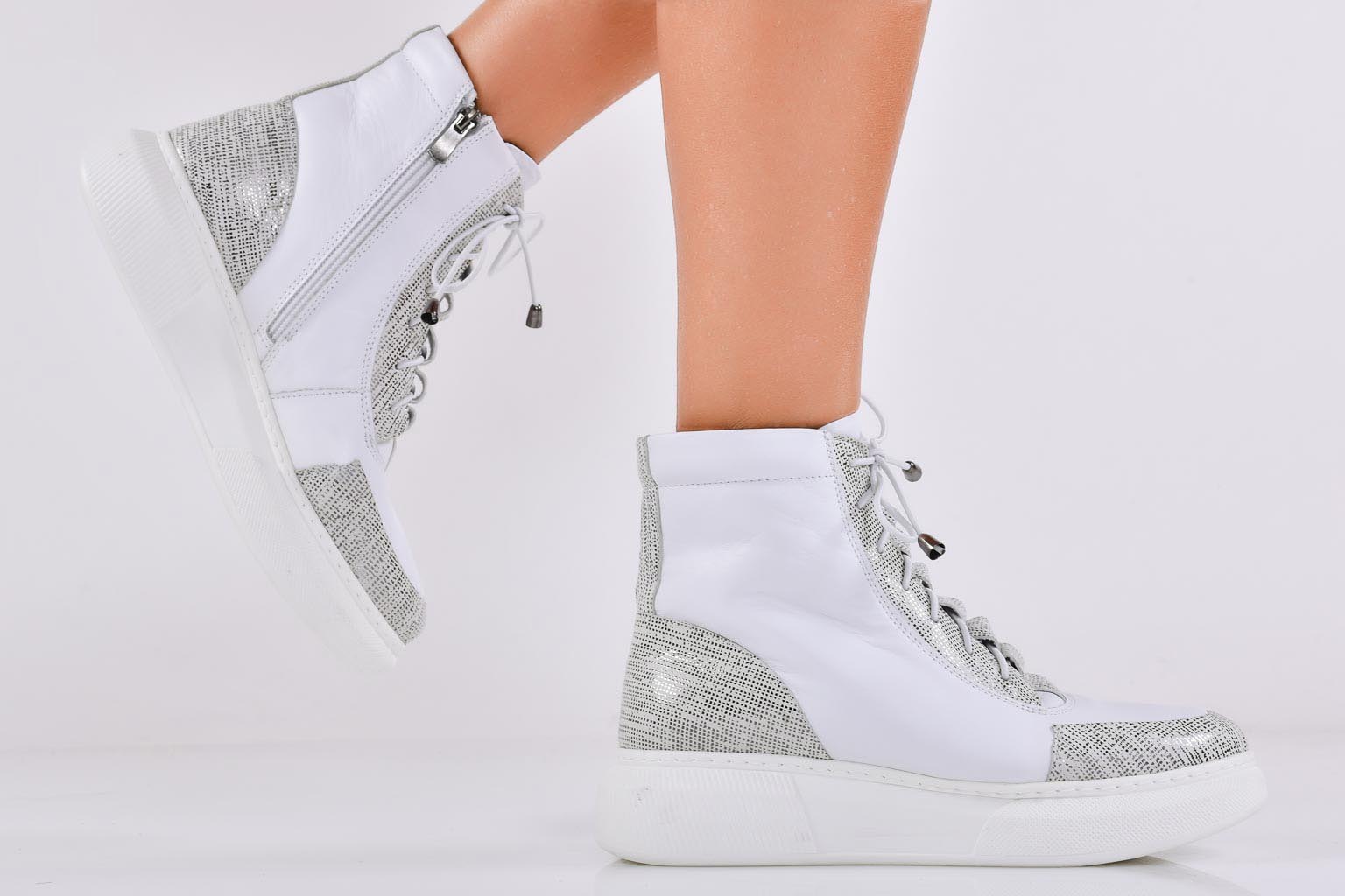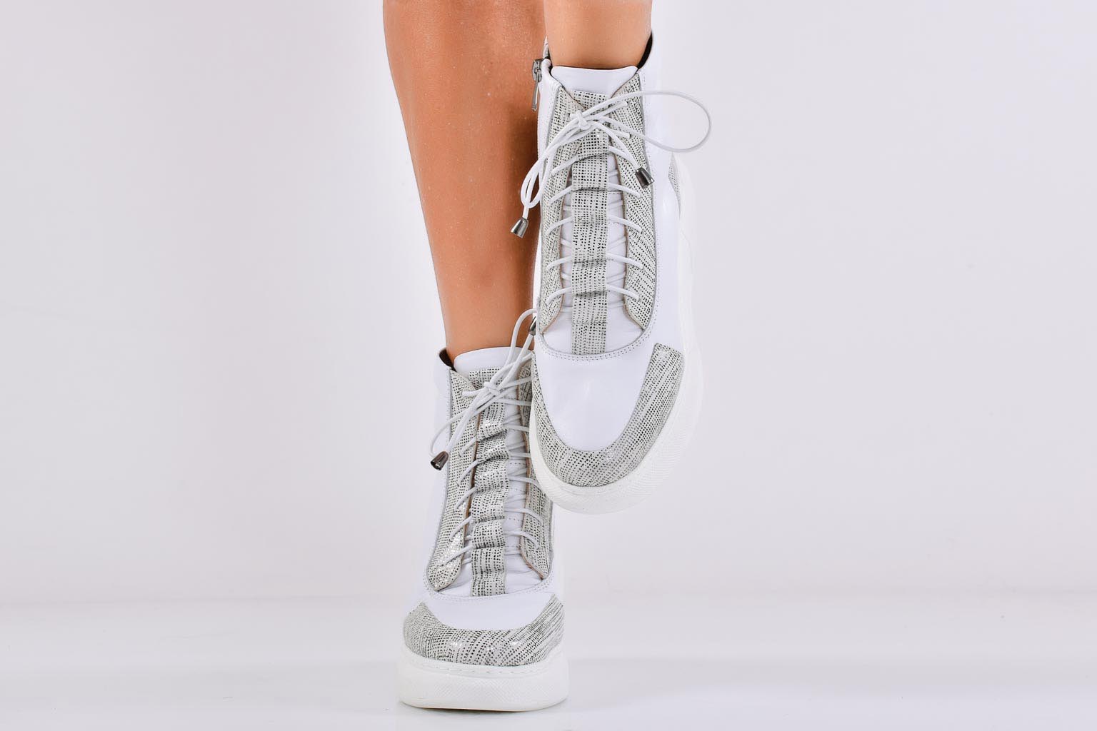 Дамски боти естествена кожа бели EOBUVKIBG #502-6854