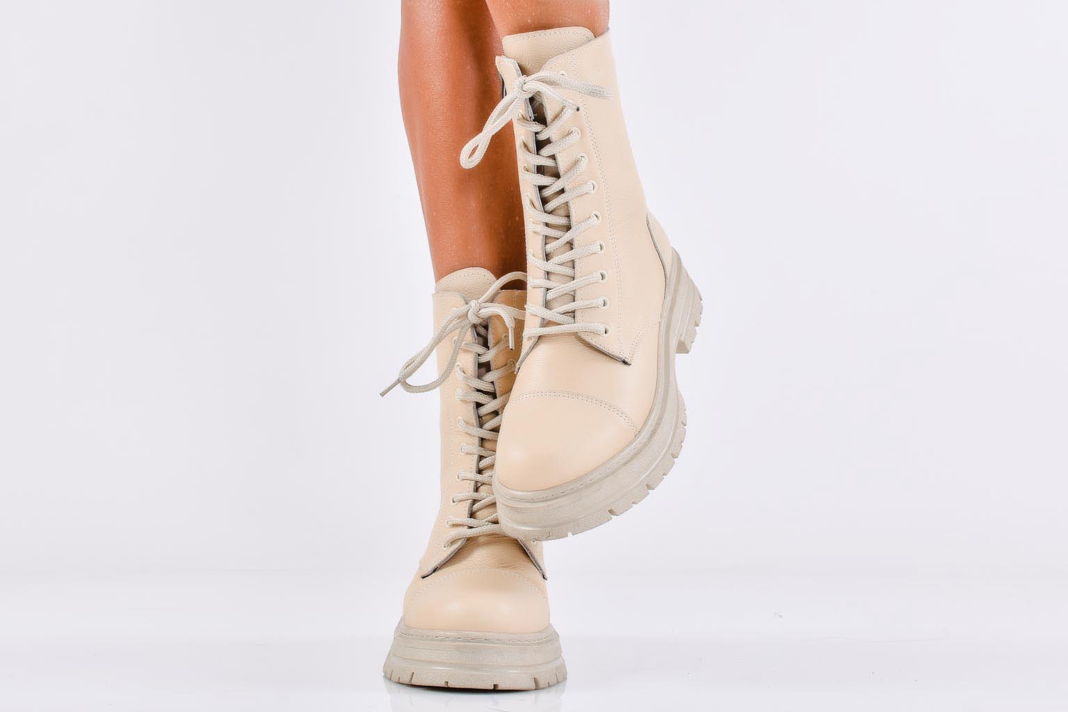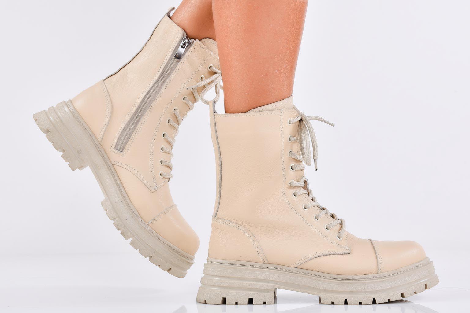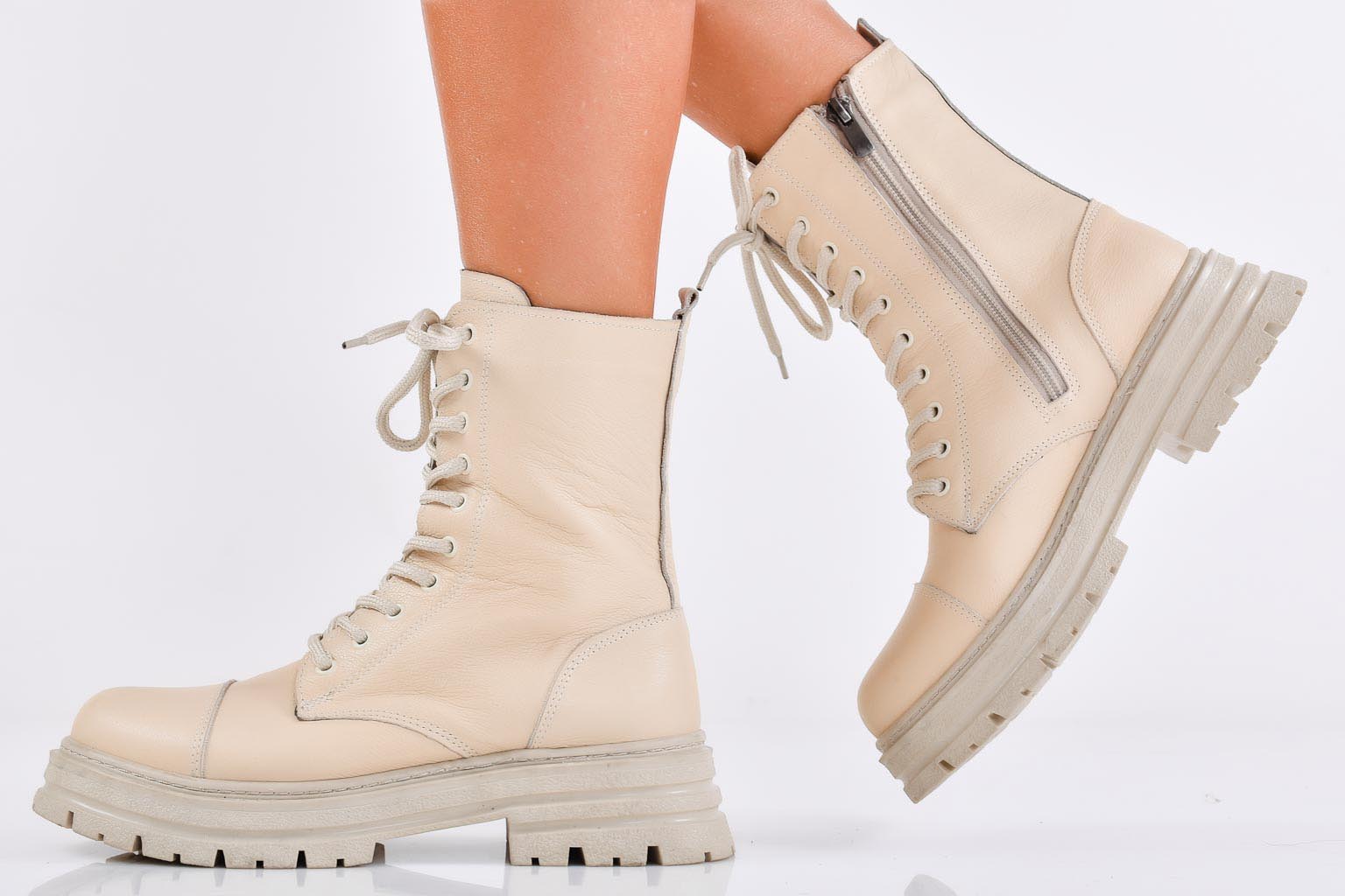Дамски боти естествена кожа бежови EOBUVKIBG