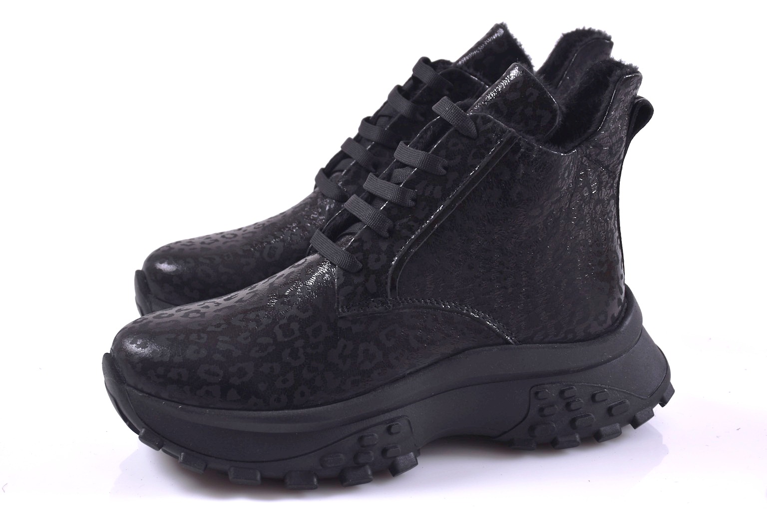 Дамски боти на платформа естествена кожа черни EOBUVKIBG