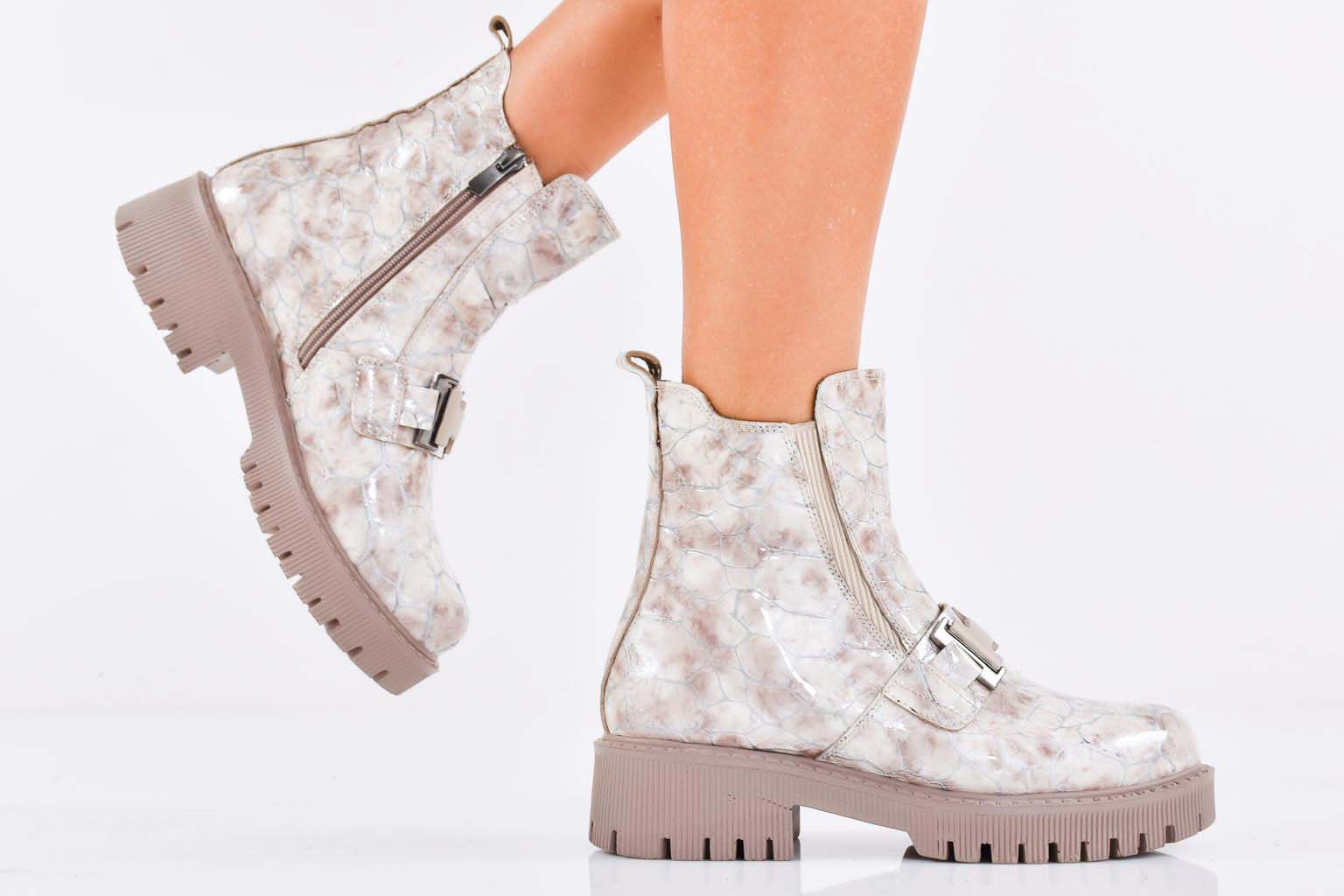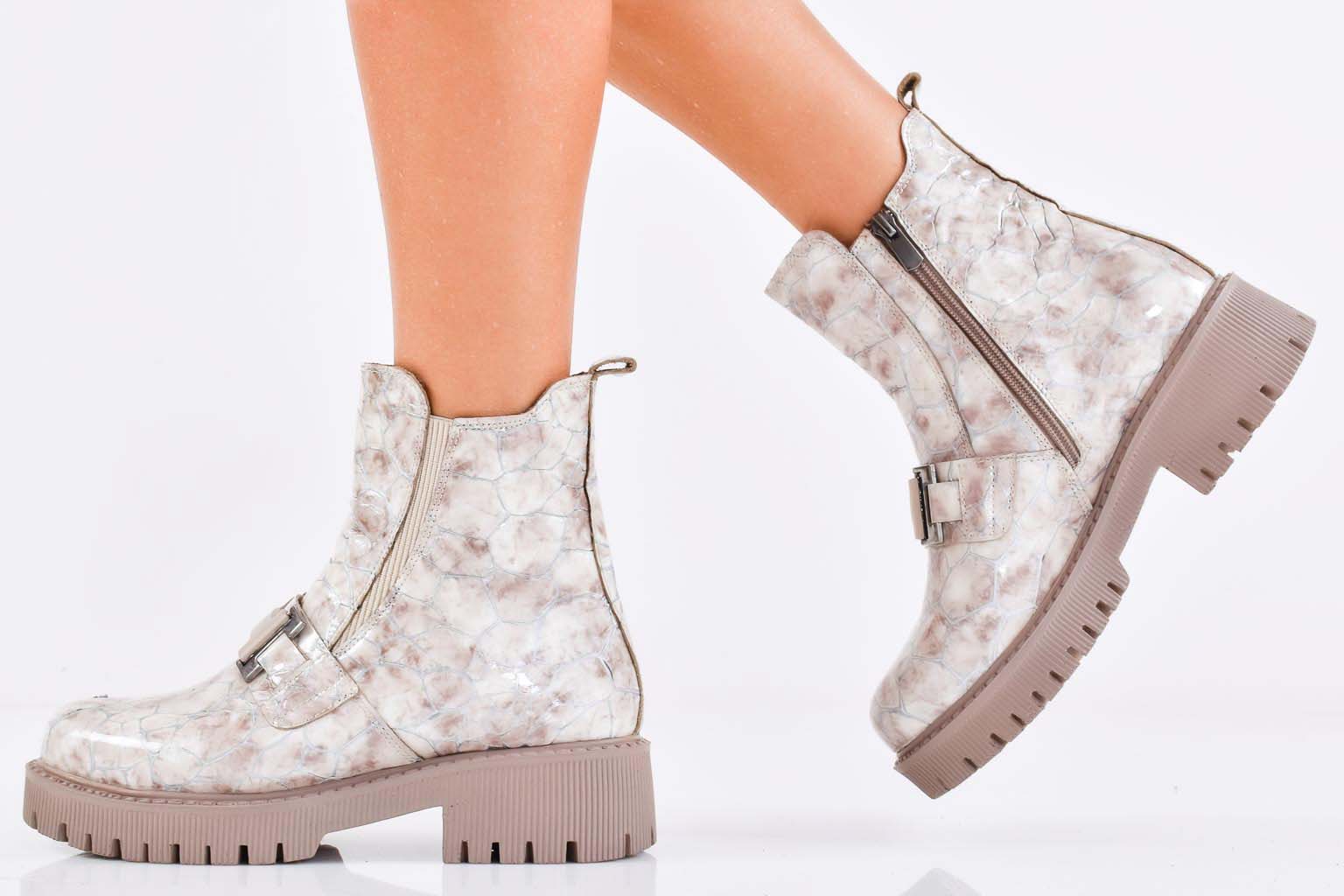Дамски боти естествен лак бежови EOBUVKIBG #502-7365