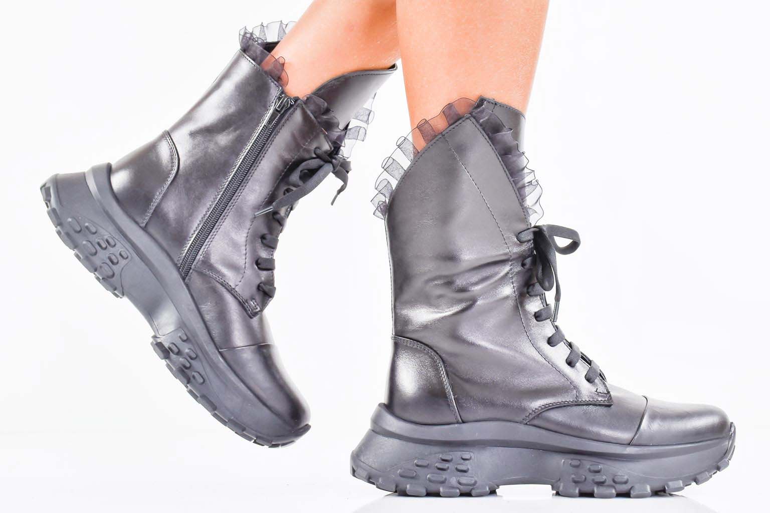 Дамски боти естествена кожа черни EOBUVKIBG