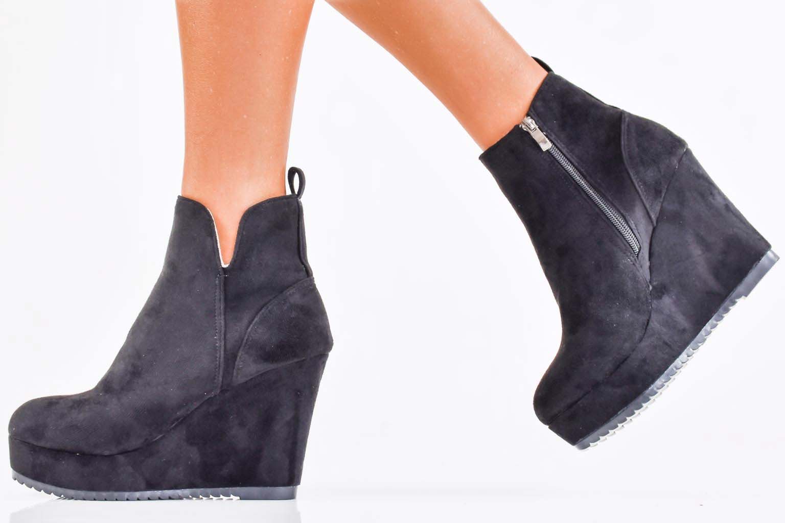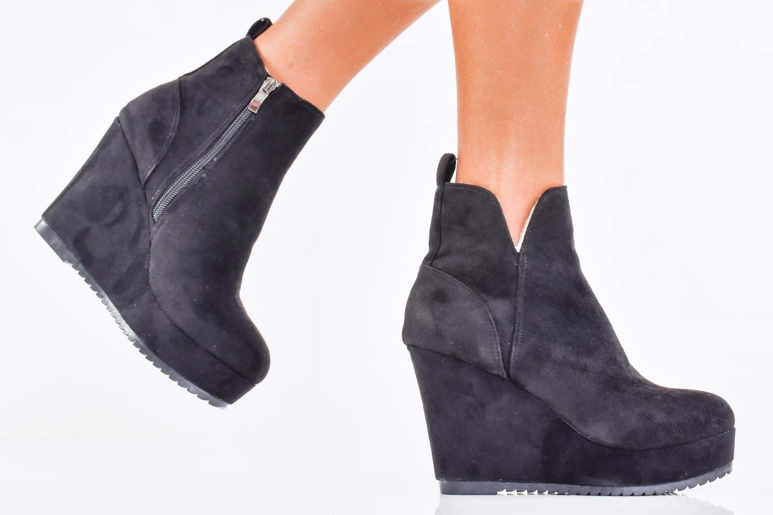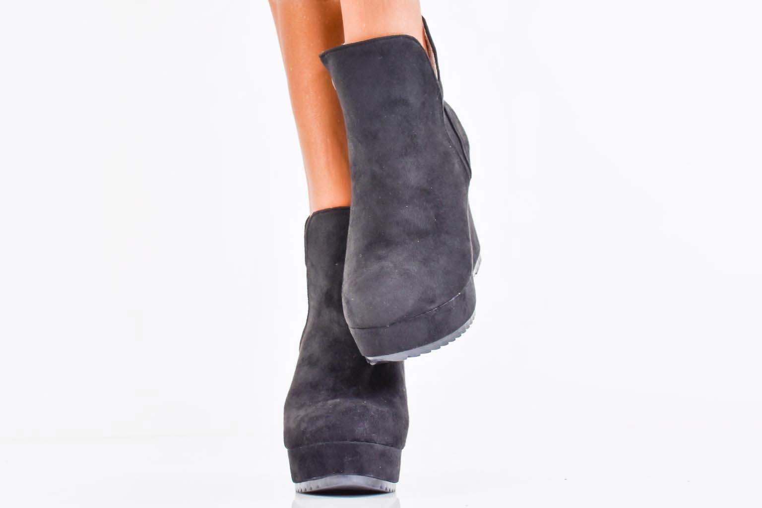 Дамски боти на платформа естествен велур черни EOBUVKIBG #502-7177