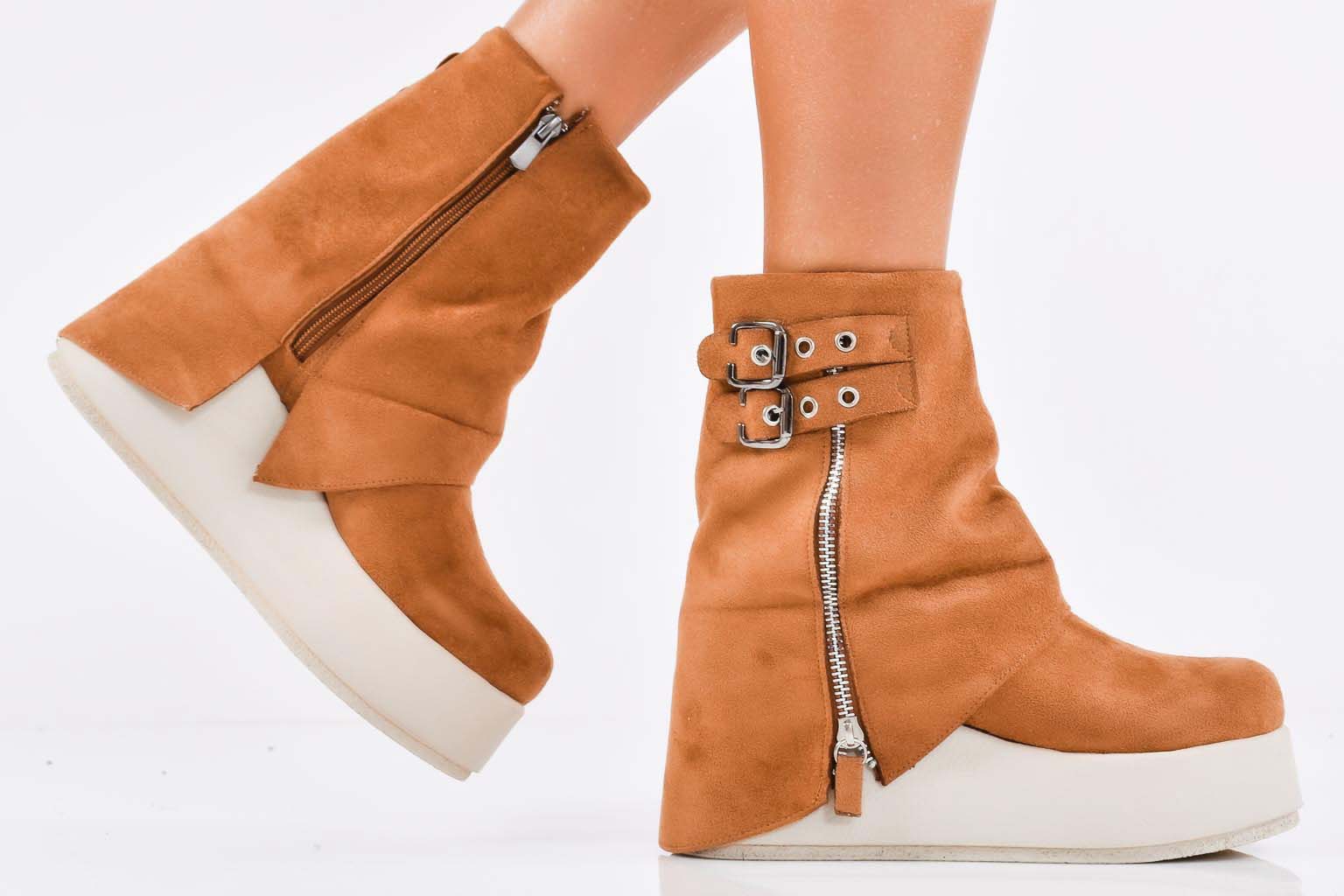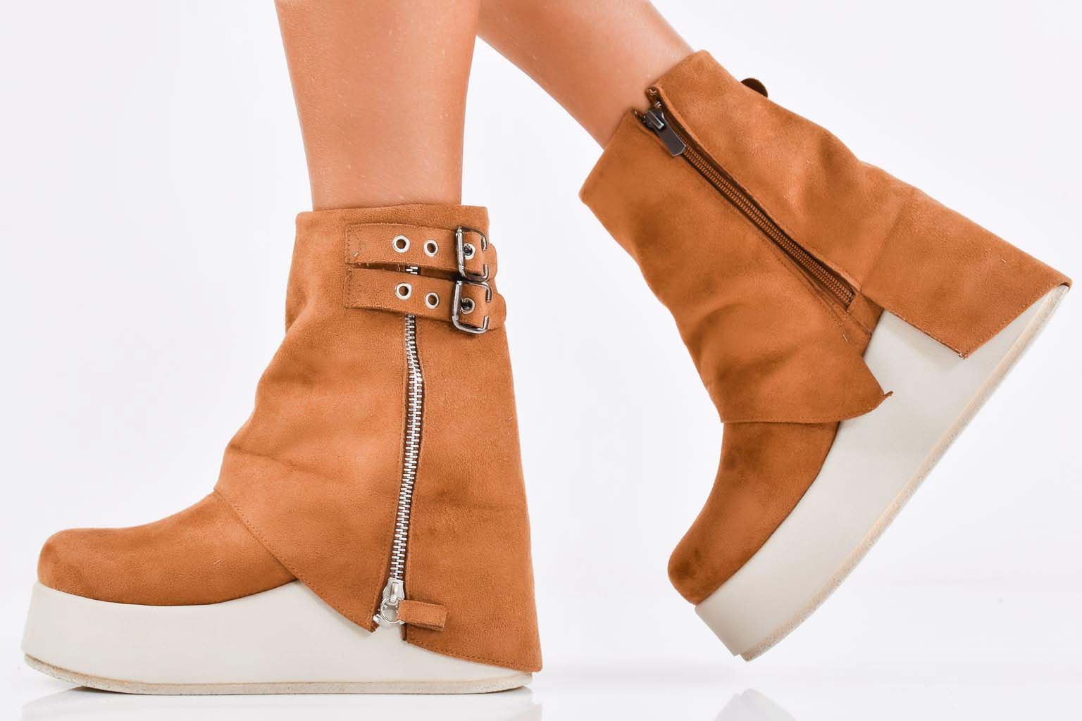 Дамски боти на платформа кафяви EOBUVKIBG #502-7278