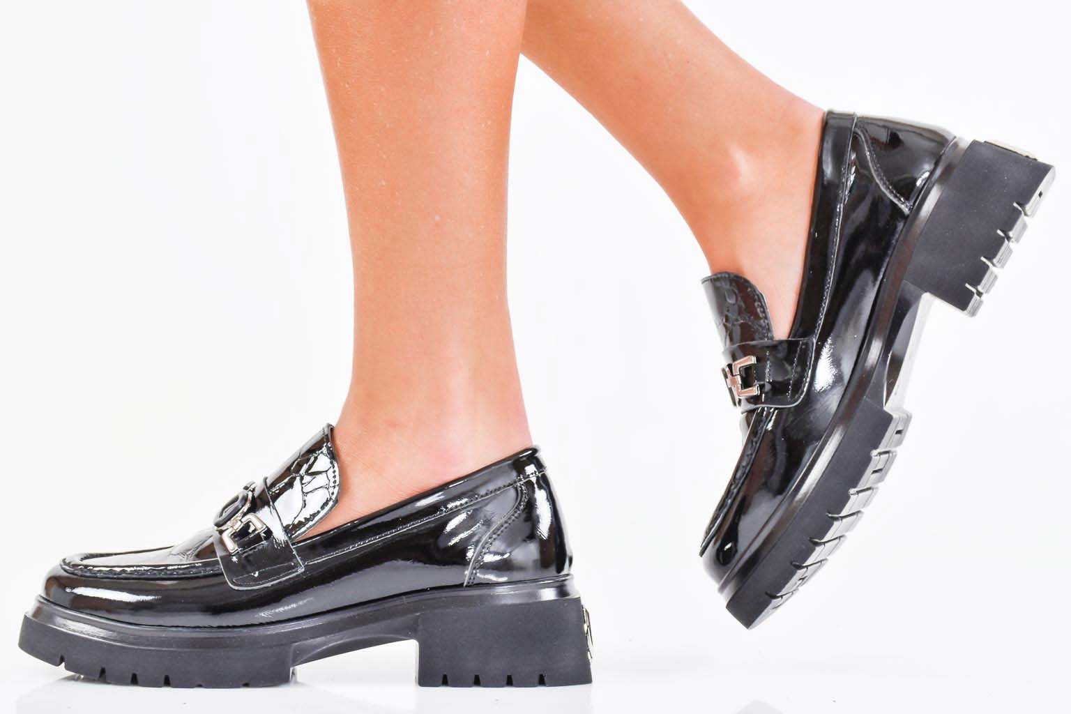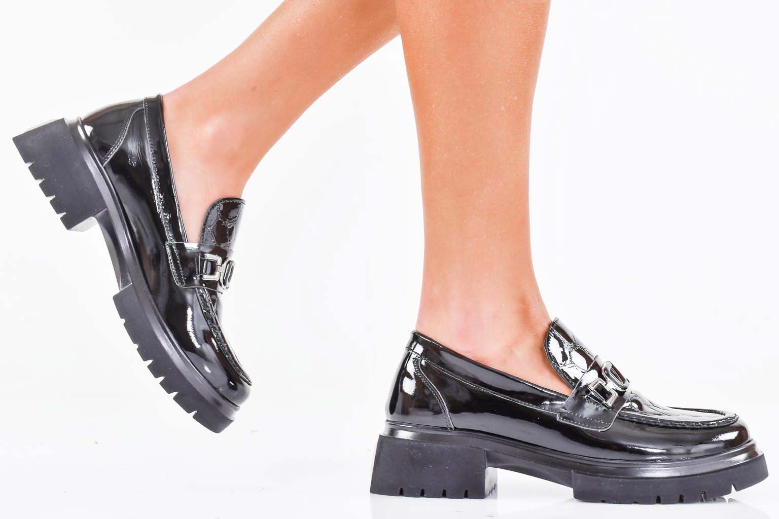 Дамски лоуфъри естествен лак черни EOBUVKIBG #502-7340